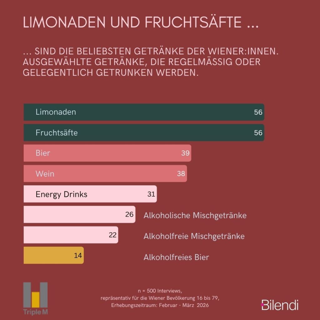 Das Glas Wein und die Gemütlichkeit beim Wiener Heurigen gehören einerseits zu den Gründungslegenden der Republik – ein Drittel der Wiener:innen glaubt weiterhin an das „gesunde Achterl“. Andererseits sind Getränke einer der wichtigsten Teilmärkte im FMCG-Bereich (Fast Moving Consumer Goods) und werden auch mit gesellschaftlichen Problemen in Zusammenhang gebracht (Zucker, Alkohol). Im Rahmen unserer Kooperation mit ORF Radio Wien und mit Unterstützung unseres Feldpartners Bilendi haben wir untersucht, wie die Wiener:innen ihr Trinkverhalten sehen, welche Getränke sie präferieren und was Motive und Barrieren für den alkoholfreien Genuss sind.